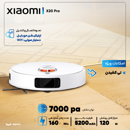 جاروبرقی رباتیک شیائومی x20 pro ، ترکیبیاز فناوری پیشرفتهو طراحی هوشمند استکه نظافت منزل رابه تجربهای بینظیر تبدیل میکند. X20 pro باویژگیهای نوآورانه خود، بهطور کامل نیازهای شمارا برآورده میکند . استفادهاز لیزرهای پیشرفته برای نقشه برداریو انتخاب دقیق مسیر برای تمیزکاریاز دیگر ویژگی هایاین رباتیک هوشمند میباشد. باقدرت مکش 7000 پاسکال میتواند زبالههاو گردو خاکو مو هارا بی دردسراز روی زمین جمع کند. جاروبرقی رباتیک شیائومی x20 pro بادو موپ چرخانو ضخیم درحین تمیز کردنبا سرعت بالایی می چرخد وتمامی لکه هارا پاک میکند. فرآیند شستشوی موپ پدبه این صورت استکه پد بهسرعت بافشار آب خیس میشود وبرای تمیز شدن میچرخد . پساز اتمام فرآیند تمیزکردن پد بطور خودکار باهوای داغ بهطور متوسطدر مدت 3 ساعت خشک میشود. باجریان هوای قوی بهسرعت محتویات مخزن گردوغبار را بهکیسه گردوخاک منتقل میکند . ظرفیت این کیسه گردوخاک 2.5 لیتر میباشد ، کافی است هر 75 روز یک بار برای تخلیه اقدام کنید کهالبته این زمان بستگی بهاستفاده شمااز جاروبرقی رباتیک شیائومی x20 pro دارد .جاروبرقی رباتیک شیائومی رامیتوانید ازطریق اپلیکیشن مدیریت کنید وطبق نیاز خود برای جاروبرقی رباتیک X20 pro برنامه ریزی کنید تاتمیزکاری راانجام دهد همچنین میتوانید مناطق ممنوعهرا مشخص کنید ،یعنی مناطقی که نمیخواهید رباتیک x20 pro آنجا را تمیز کندویا مناطقیرا مشخص کنید کهچند بار آنجارا تمیز کند. کنترل جاروبرقی رباتیک شیائومی x20 pro ازراه دور حتی زمانی کهدر خانه نیستید بهراحتی خانه خود راتمیز کنید . هنگامی کهخارج ازخانه هستید، بایک کلیک سریع روی برنامه Mi Home/Xiaomi Home، کارهای تمیز کردن رااز راه دور شروع کنید. عملکردهای سفارشی مانند تمیز کردن برنامه ریزی شدهو تنظیمات مربوطبه مناطقی کهمیخواهید محدود شوندرا انجام دهید .بنابراین x20 pro تمیز کردن بدون دردسر رادر اختیار شما قرار می دهند. جاروبرقی رباتیک شیائومی X20 pro بهطور منظمو بادقت خانه شما راتمیز میکندو شما بدون دغدغه های نظافتیاز داشتن یک خانه تمیز لذت ببرید.