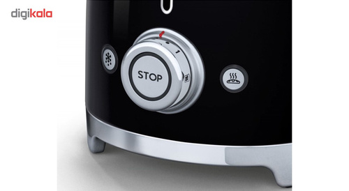 توستر اسمگ مدل TSF01 طراحی بسیار خاص و زیبایی دارد که یادآور وسایل خانگی قدیمی است. این مدل از سری 50s Style اسمگ است که با الگوبرداری از سبک طراحی دهه‌ی 60 و اوج دوران مدرنیته طراحی شده‌اند. از همین رو در طراحی آن‌ها از خط‌های صاف و زاویه‌های تند استفاده نشده است. این سبک طراحی باعث می‌شود دستگاه حس خشک و صنعتی یک ماشین را نداشته باشد و بیشتر دکوراسیون آشپزخانه را گرم و صمیمی کند. این توستر دارای 2 جای نان است و از این رو برای خانواده‌های کوچک دو نفره بسیار مناسب است. همان‌طور که از نام این دستگاه پیداست، کار اصلی آن تست کردن نان است. باوجود قابلیت تنظیم حرارت، کاربر می‌تواند نان تست خود را به میزان مورد علاقه‌ی خود تست کند تا کاملا ترد، نیمه ترد یا نرم باشد. البته برای دستگاه دکمه‌ی توقف هم در نظر گرفته شده تا کاربر بتواند فرایند تست شدن را متوقف کردن و میزان تردی نان را بسنجد. البته که توستر غیر از کار اصلی خود، برای یخ زدایی نان هم کاربرد دارد. شاید این مفیدترین کاربرد توستر باشد چون مشکل گرم کردن نان با مایکروفر یا روی گاز را حل می‌کند. وقتی نان را روی اجاق گاز گرم می‌کنیم احتمال سوختن آن بسیار زیاد است. همچنین وقتی نان را با مایکروفر گرم می‌کنیم تنها برای چند دقیقه حالت تازگی دارد و پس از آن کاملا خشک و سفت می‌شود. اما توستر با حرارت طبیعی، متداوم و نه چندان زیاد نان را یخ‌زدایی و سپس گرم می‌کند. به این صورت نان طوری گرم می‌شود که انگار به تازگی از تنور بیرون آمده است. برای این که خورده نان داخل توستر جمع نشود و تمیز کردنش کاربر را دچار دردسر کند، یک سینی کشویی زیر دستگاه کار گذاشته شده که خورده‌های نان روی آن می‌ریزد و کاربر به سادگی آن را بیرون می‌کشد و تمیز می‌کند.